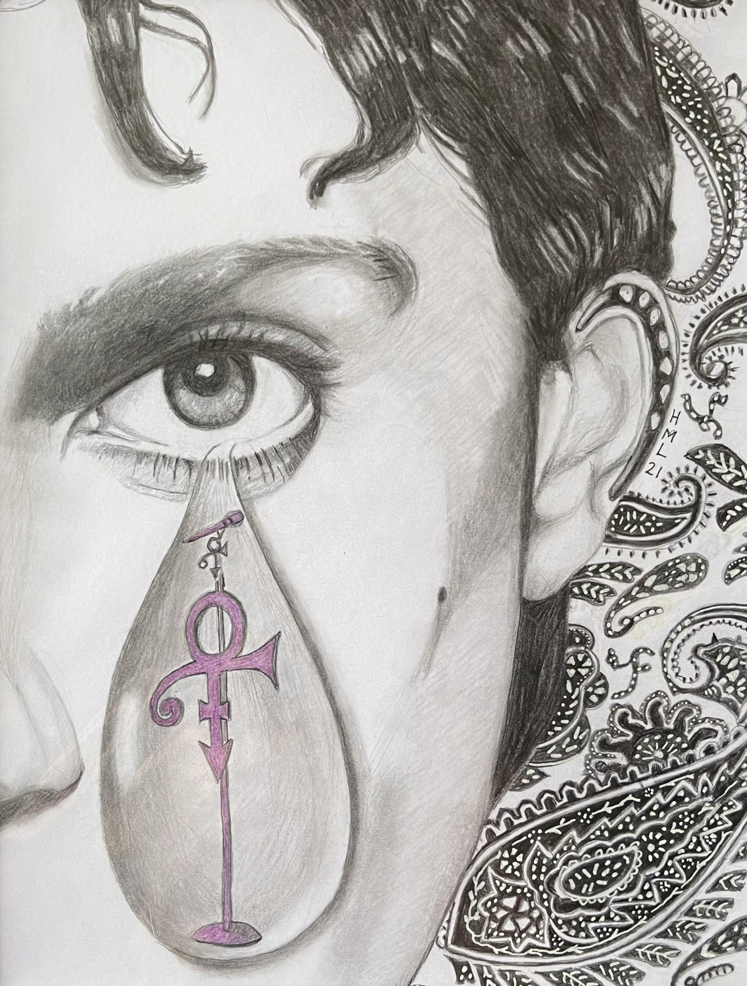 Back in January, I was contacted by Dawn Burton Hodge, who I had met briefly a couple of times. She had an idea for a painting or drawing which included P's eye with a tear falling down, and in the tear his symbol microphone stand.