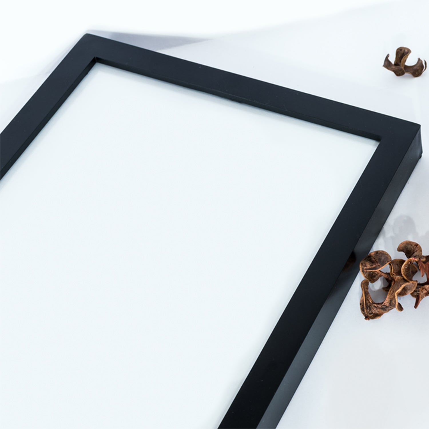 - Option to add frame - 25mm smooth matt black frame with 2mm glass