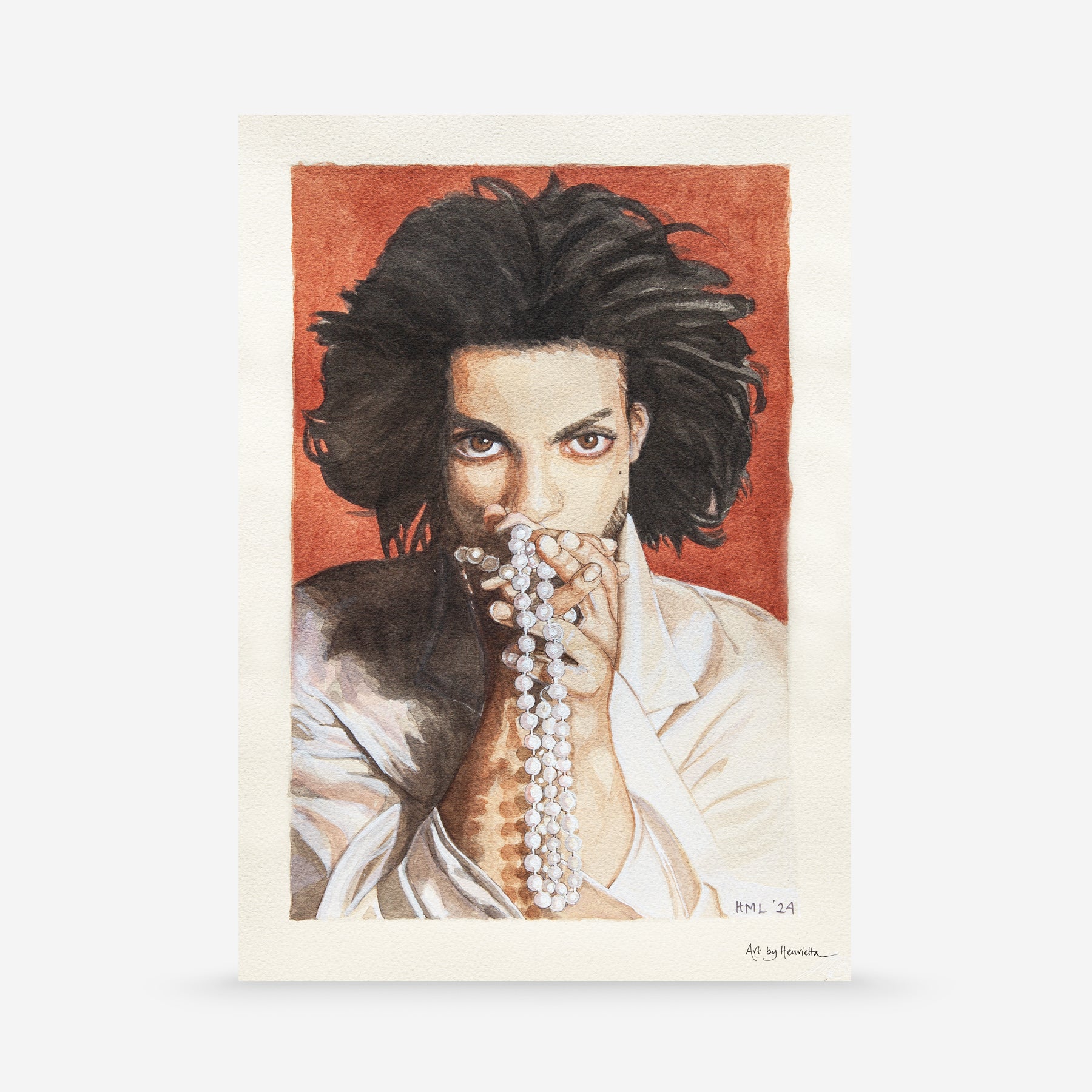 A fine art print of a watercolour painting of Prince during the 'Diamonds and Pearls' period.
